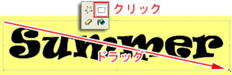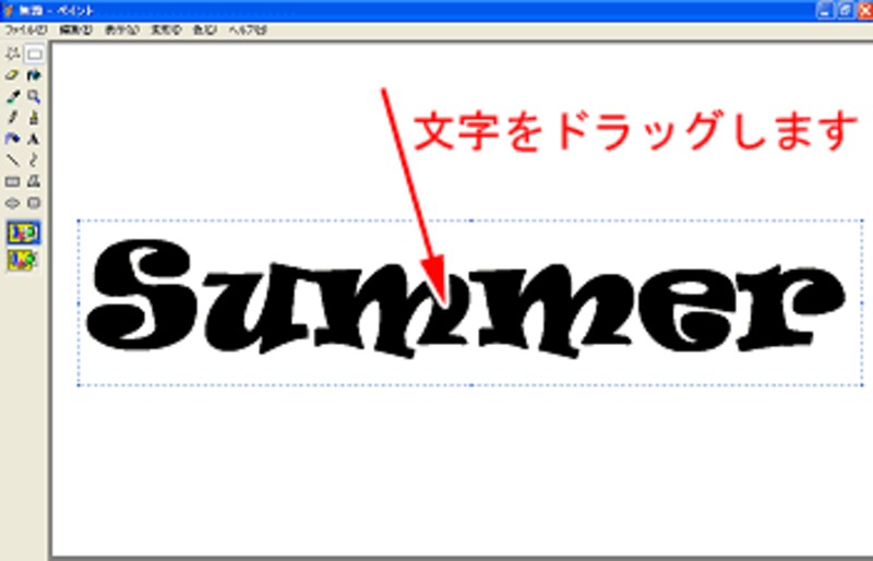 [選択]ツールを選び、描いた文字を囲むようにドラッグして選択します。↓