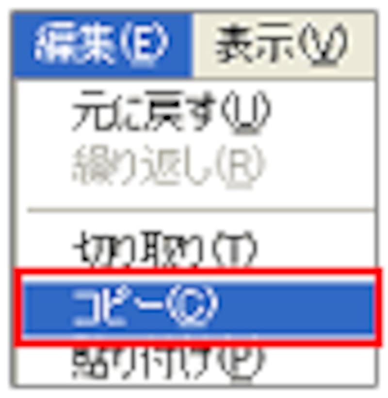 [編集]メニュー→[コピー]を選び、選択範囲をクリップボードにコピーしておきます。↓