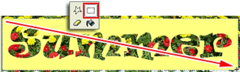 文字の位置が確定しましたら、切り抜く範囲設定します。[選択]ツールを選び、色を流し込んだ範囲の少し内側をドラッグして囲みます。↓