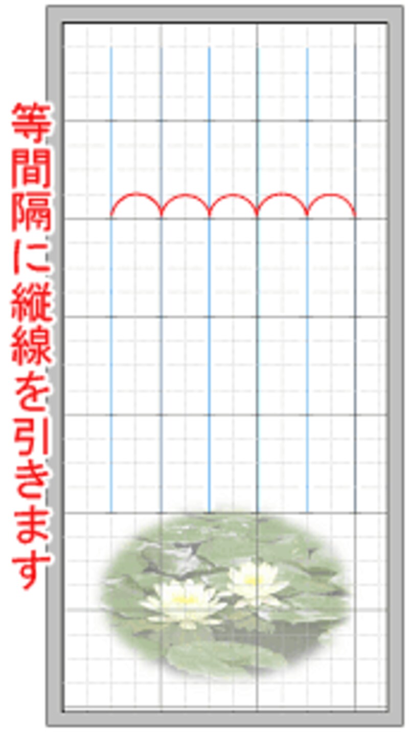 同様の手順で、グリッドのマス目を参考にして線を等間隔で縦に引きます。