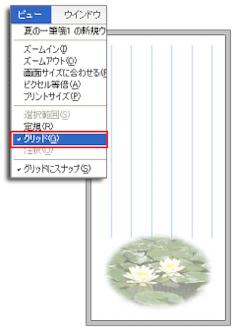 すべての線を引きましたら、再び[ビュー]メニュー→[グリッド]を選び、グリッド表示を消します。↓
