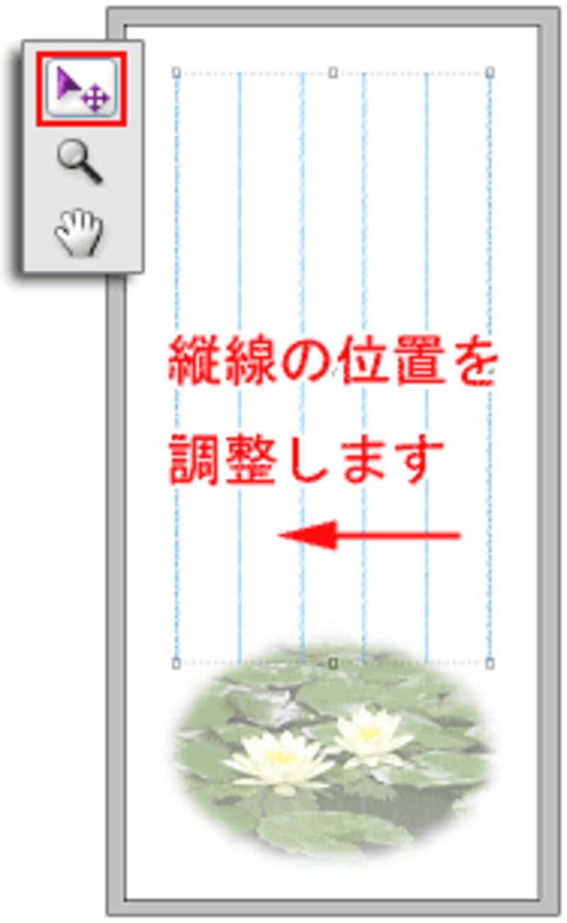 ツールボックスの[移動]ツールを選び、罫線をドラッグ、または矢印キーを押して罫線の配置を整えます。↓