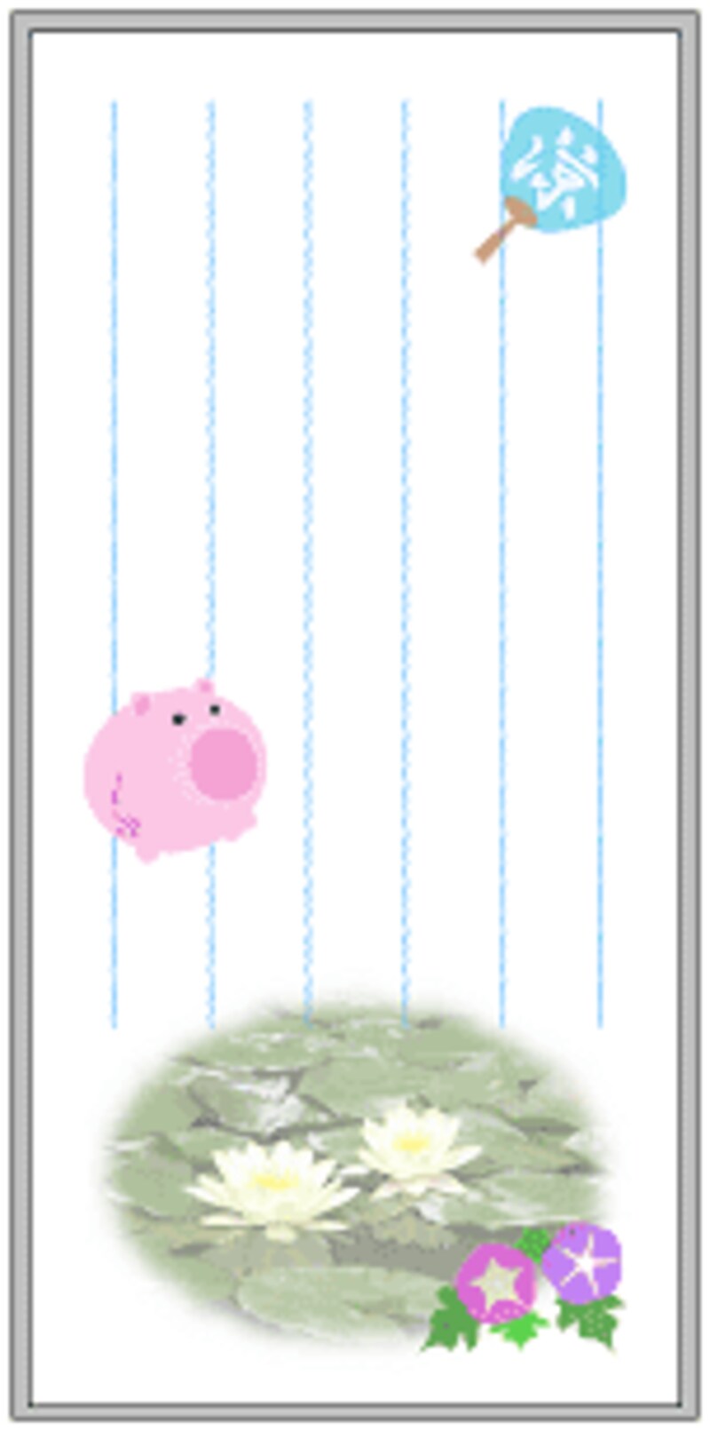 Photoshop Elements3.0で開いたイラスト素材は、[移動]ツールで一筆箋のウィンドウへドラッグ&ドロップします。位置や大きさを調整したり、またはレイヤーの不透明度を小さくして少し透明感を出して涼しげに見せるなどアレンジが楽しめます。