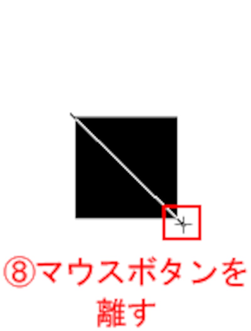 Shiftキーを押しながら四角形の左上よりもわずかに斜め上から右下へドラッグします。↑