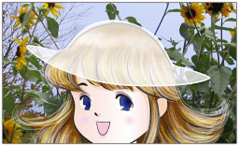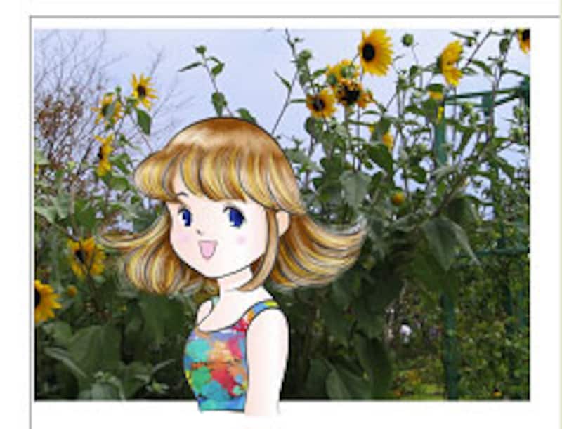 ベクトルで描いた画像の背景に、デジカメ写真を貼り付けることはもちろん、写真の印象をさまざまに変化できるフィルタの種類も豊富にそろっています。↓