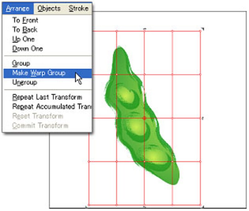 また、ベクター画像のワープ変形機能を使うと、曲線をなめらかな状態で、自在に湾曲させることができます。↓
