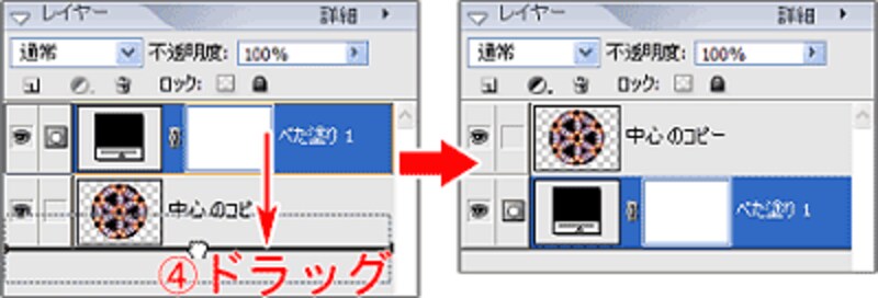 - [レイヤー]パレットで[中心のコピー2]レイヤーを選択します。
