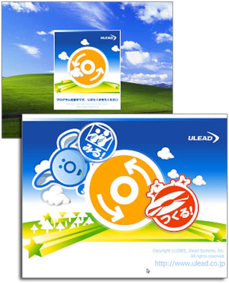製品は、一見何の変哲もないDVDディスクです。まずはこのディスクを、DVD-RW書き込み可能なDVDドライブに挿入してみましょう。起動すると音声とともにとてもかわいらしいキャラクターのスタート画面が現れます。