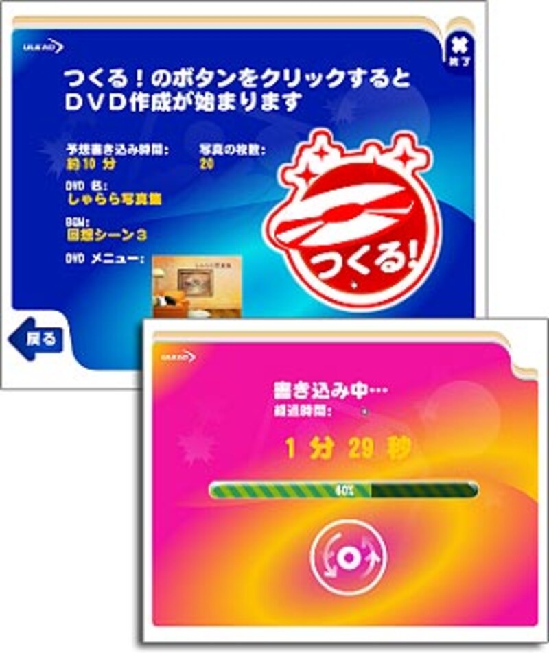 あとはDVDの内容確認画面で[つくる!]ボタンをクリックすると同時に、速やかに書き込みが開始します。それもそのはず、このディスク自体がDVD-RWだからです。↓