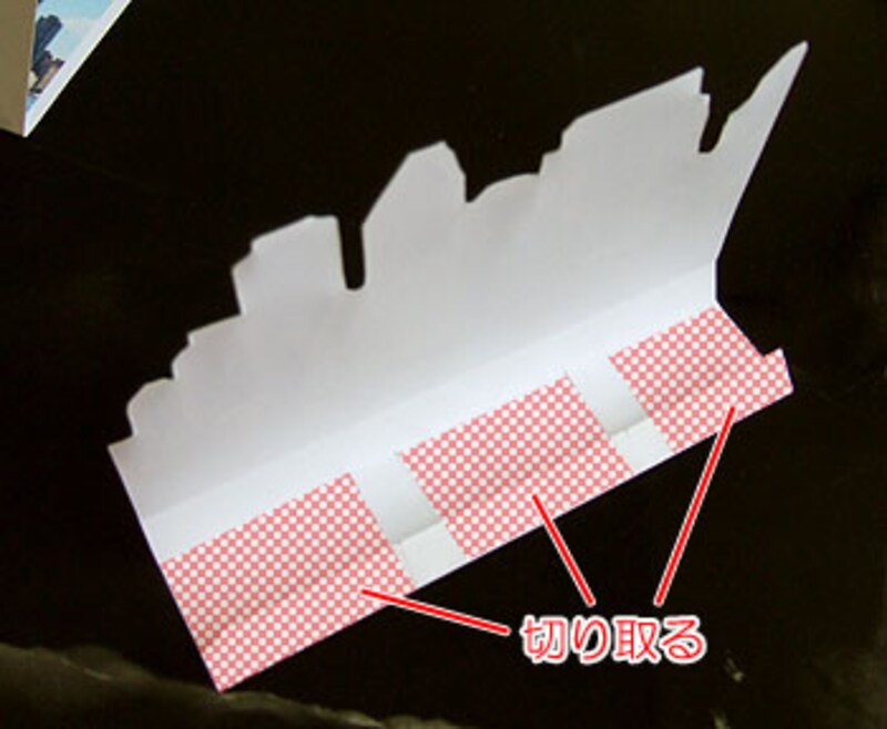 立体用を裏側から見ます。下の折り目より5センチを残して切り落とします。