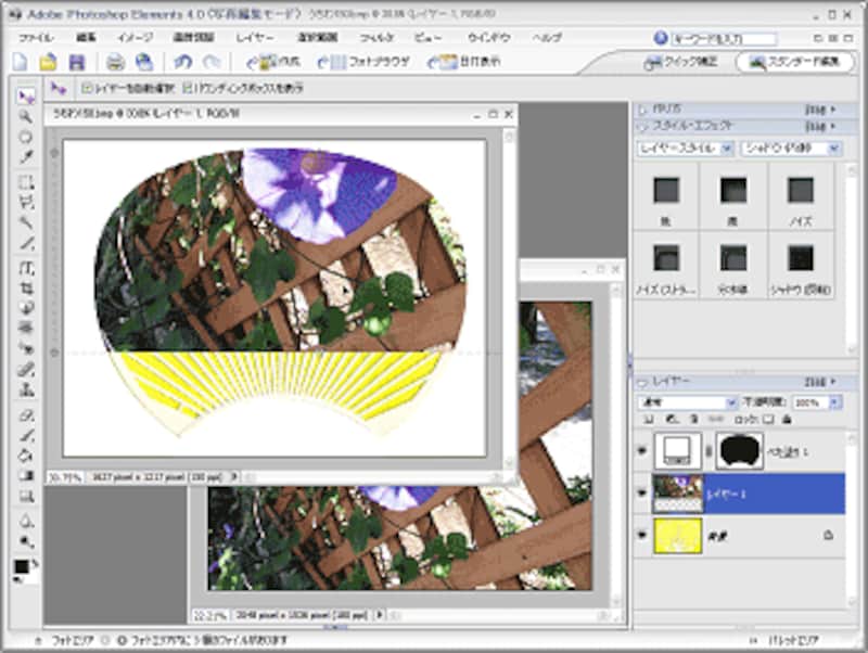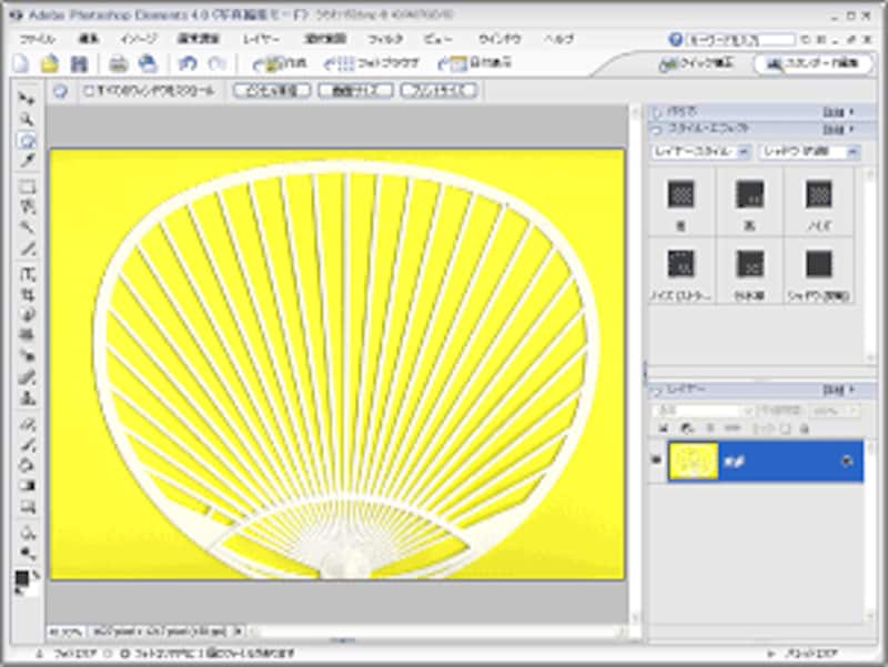 | Photoshop Elementsにうちわの形を読み込んだところです。 |