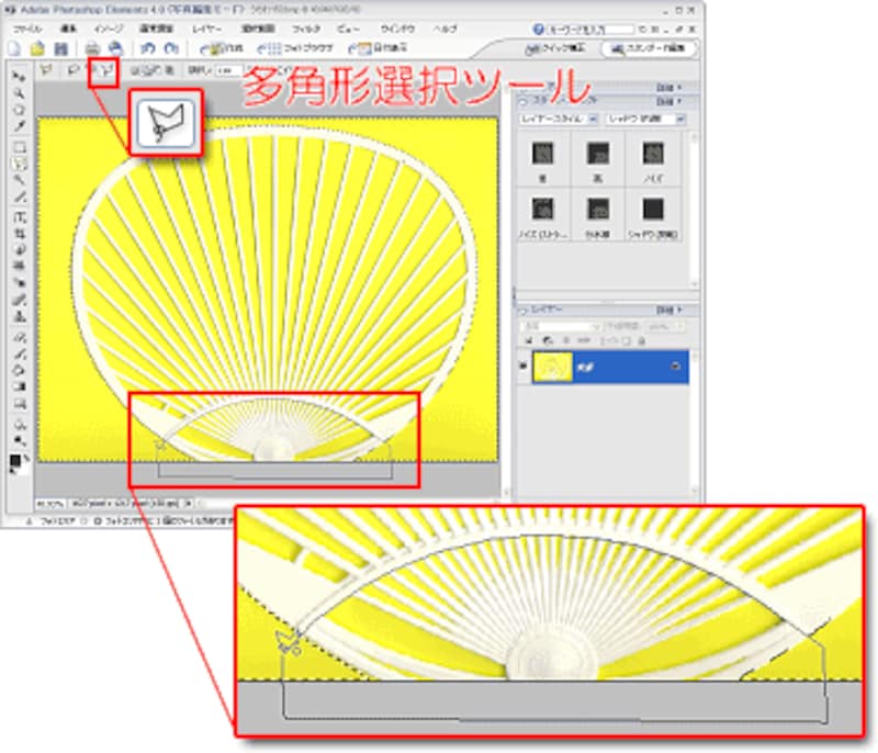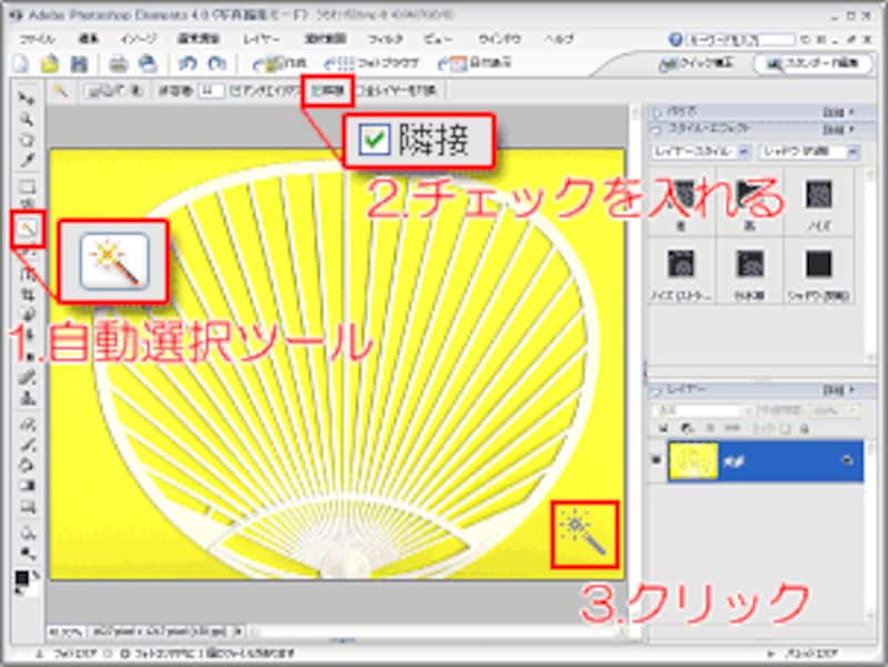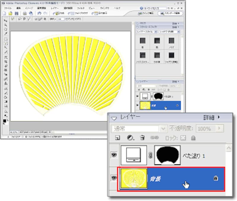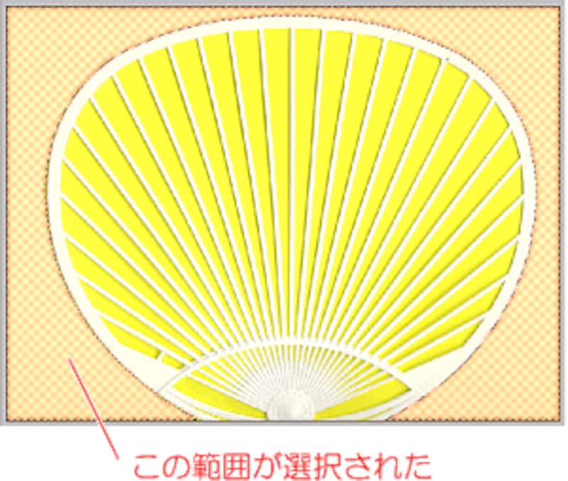 うちわの画像のレイヤーパレットで、[背景]レイヤーをクリックして選択しておきます。