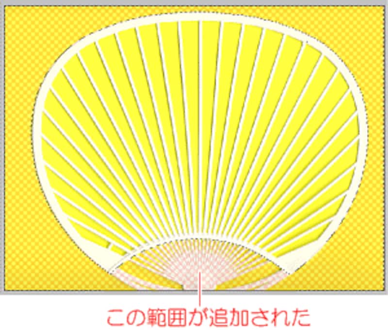 次に、うちわの骨の下部を、選択範囲に追加します。