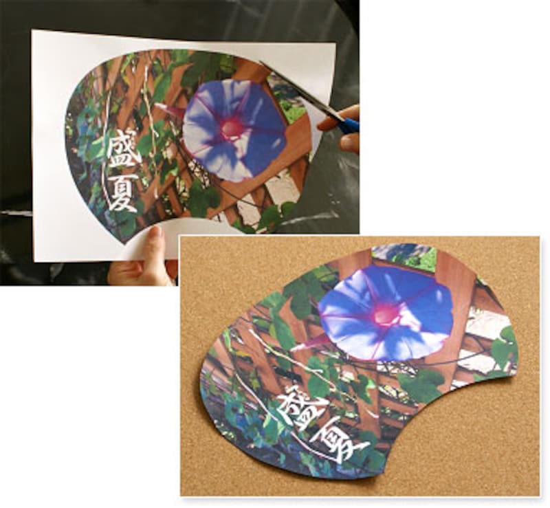 うちわ用の画像を切り取ります。うちわの輪郭より1~2ミリ程度内側にはさみを入れていきます。