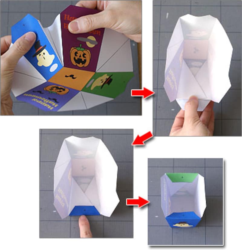 まず底面を山折りにしてから、側面を山折りします。