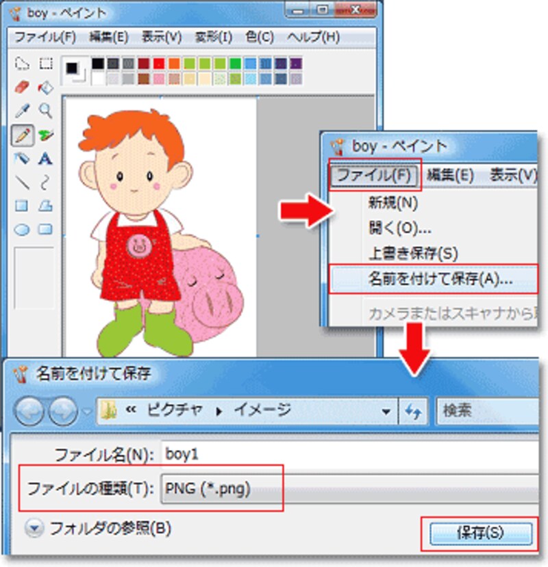 たとえば、ペイントでもGIFを開いてPNGに変換できます。