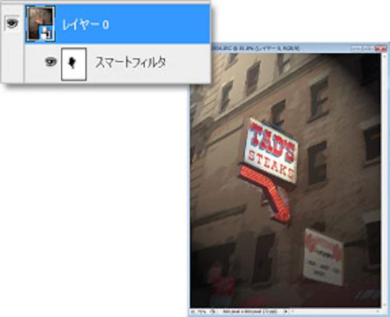 これまで1度かけたフィルタをやり直すには、ヒストリーで前の状態に戻していましたが、[スマートフィルタ用に変換]を適用すると、フィルタをレイヤー上で管理できるので、簡単に何度でも調整のやり直しが利き、しかも画像が劣化していくということもありません。スマートフィルタでまさに柔軟に、安心してフィルタを重ねることができますね。