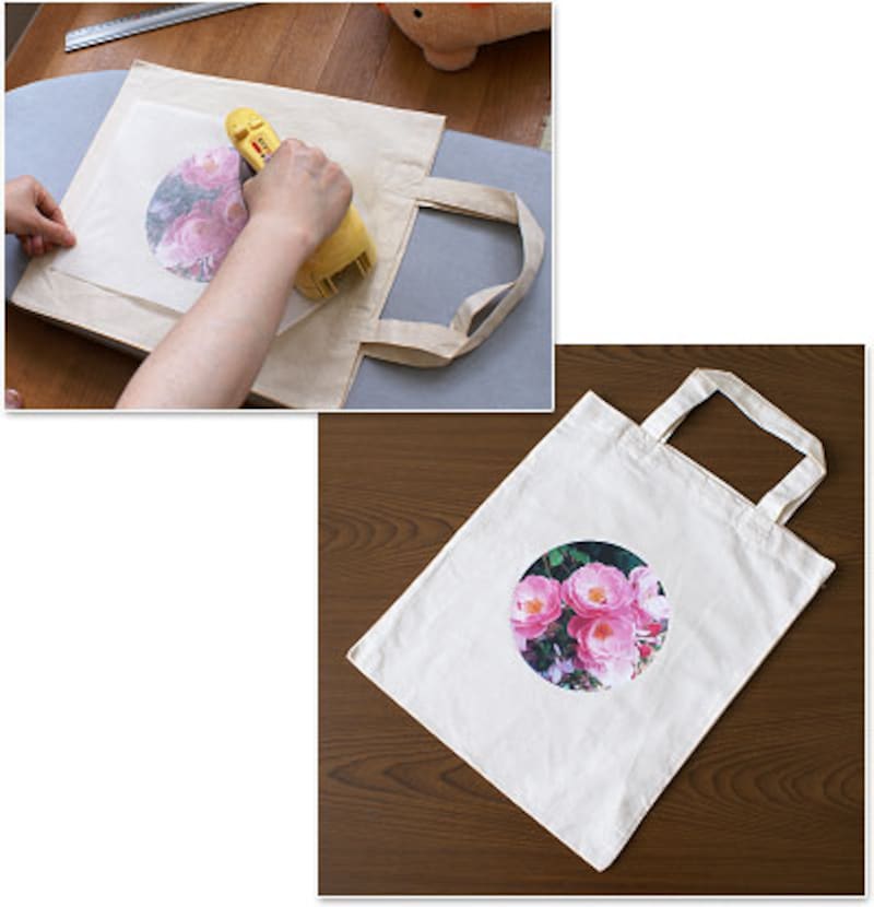 ドライ設定のアイロンで接着します。アイロンプリント用紙には、上に重ねてアイロンを当てるためのシリコン紙が付いている場合もあります。