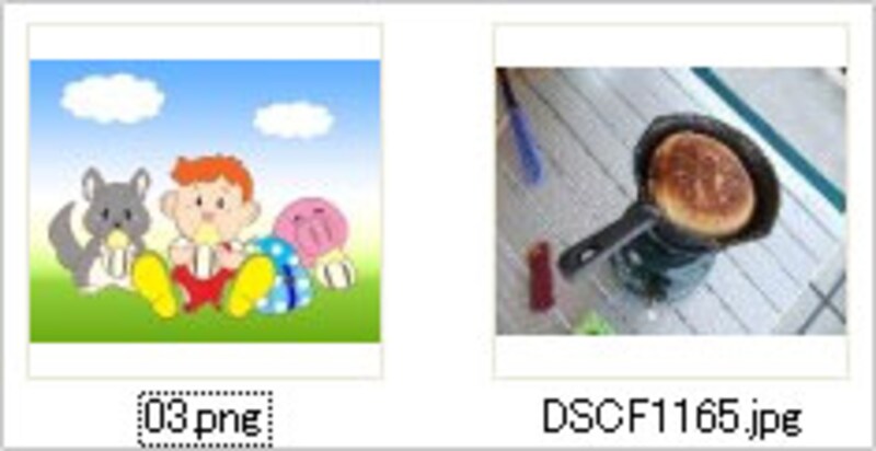 下図のように、画像の「ファイル名.拡張子(jpg、png、bmp、gifなど)」が表示されている場合は、次の方法で非表示設定します。