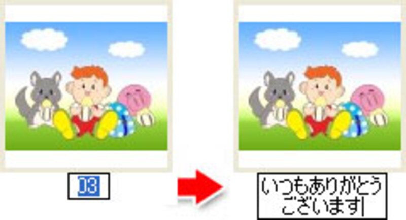 | ここでは「いつもありがとうございます」と、全角13文字を入力しています。 |