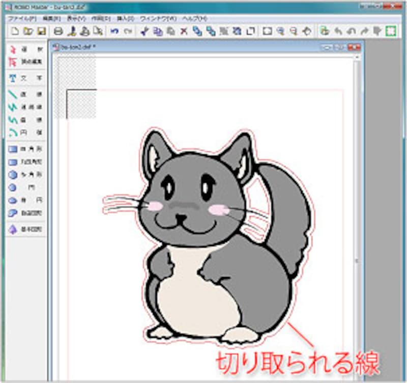 切り取るための線ができあがります。この線がクラフトロボで切り取ったり、破線を作成するラインになります。この線はパスでできているので、印刷はされません