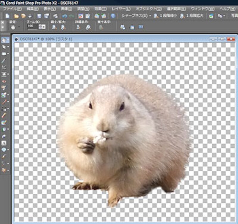 | 「マジックワンド」ツールでドラッグした後、自動的に背景が削除された状態です。 |