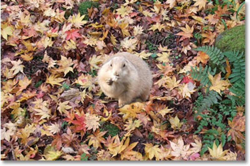 切り抜いたプレーリードッグを、ほかの写真に貼り付けてみます。ここでは落ち葉の写真にコピー&ペーストします。すると細かい毛の間に、背景が見える状態で貼り付けられています。