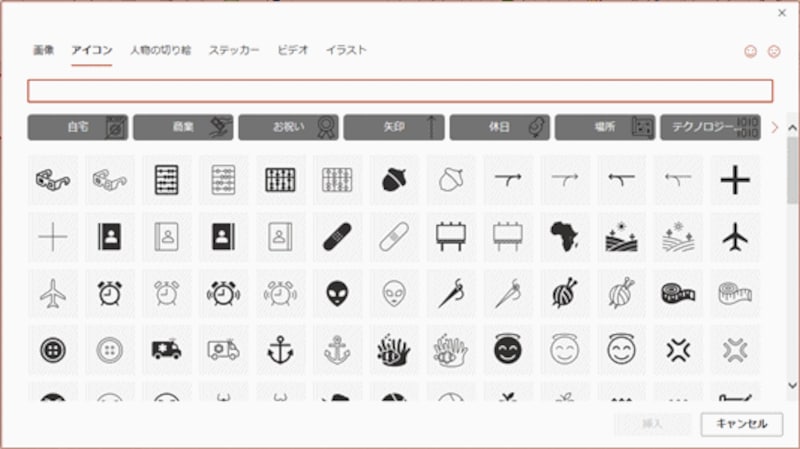 登録した機能に対応する数字がわからないときは、「Alt」キーを押すと、クイックアクセスツールバーのボタンに数字が表示されるので確認しましょう。 前述した操作で登録した「アイコンの挿入」機能を実行するには、「Alt」+「6」キーを押します。すると瞬時にアイコンを選択する画面を表示することができます。 同じ要領で、よく使う機能をクイックアクセスツールバーに複数登録することができます。10個以上の機能を登録した場合は、「Alt」+「0」+「数字」(もしくは英字)キーを押して実行します。