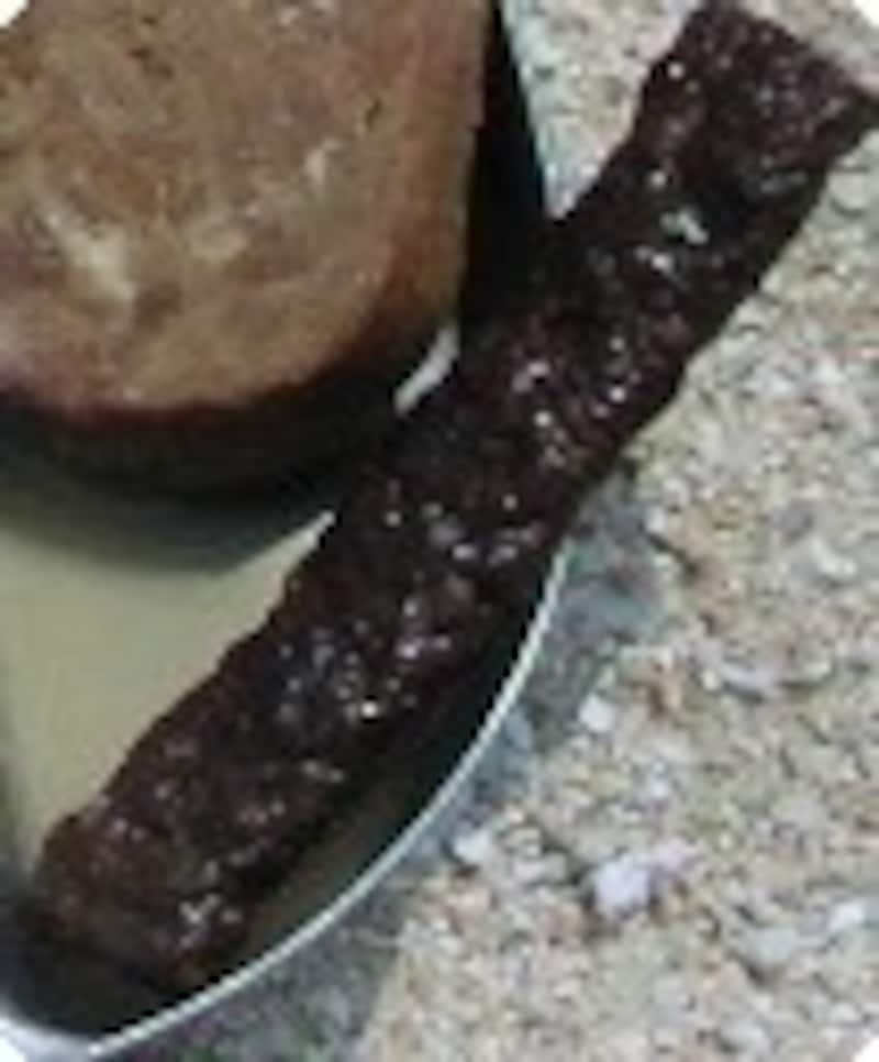 チョコレート味のキャラメル。多分想像するに、このメニューを作成した軍の担当者は本当はチョコレートをメニューに入れたかったんだけど、チョコレートそのままでは溶けてしまうからチョコレートのようなキャラメルを入れたのではないか。(120kcal)(次ページへつづく…)