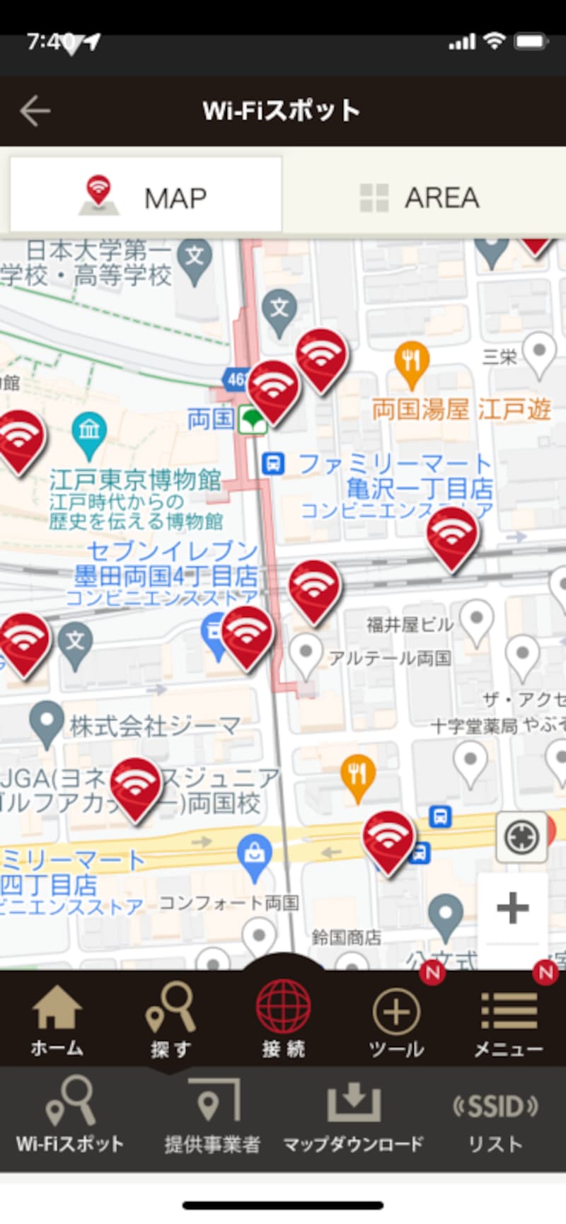 こちらも、アプリの利用登録のみで多数のフリーWi-Fiに事前登録することができます。FacebookやTwitter、LINEなどのSNSアカウントによる登録も可能です。また、事前に情報マップをダウンロードしておけば、ネットワーク環境がなくてもWi-Fiスポットを見つけることができるオフラインマップ機能もあります。