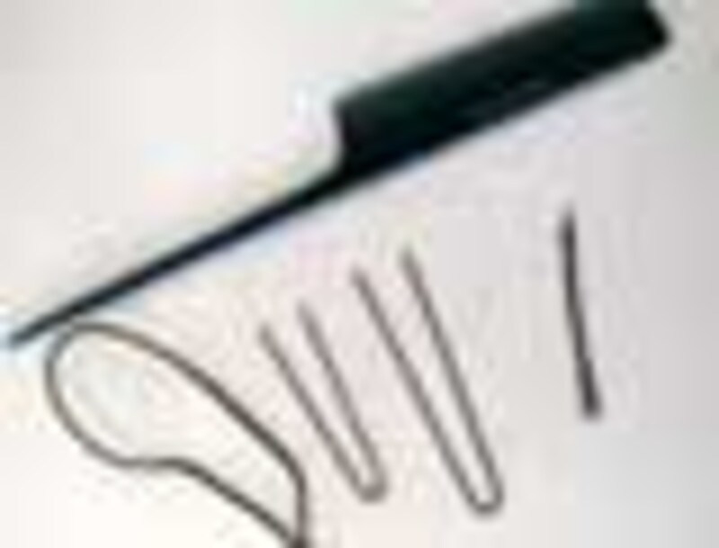 ![]() さあ、基本知識を読み終えた後、実践に移っていきましょう。まず用意して頂く物は、アメリカピン(普通のピン)ユーピン(ゆー字型をしたピン)ネジピン(ユーピンのひとまわり大きい物)コーム(くし)ゴムを用意します。 準備はこれで終了!いよいよ実践編に突入です。