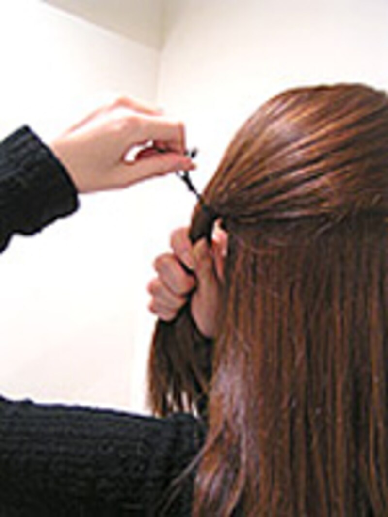ここで一息。次のページでは、細かく毛束を作ってまとめていきましょう。