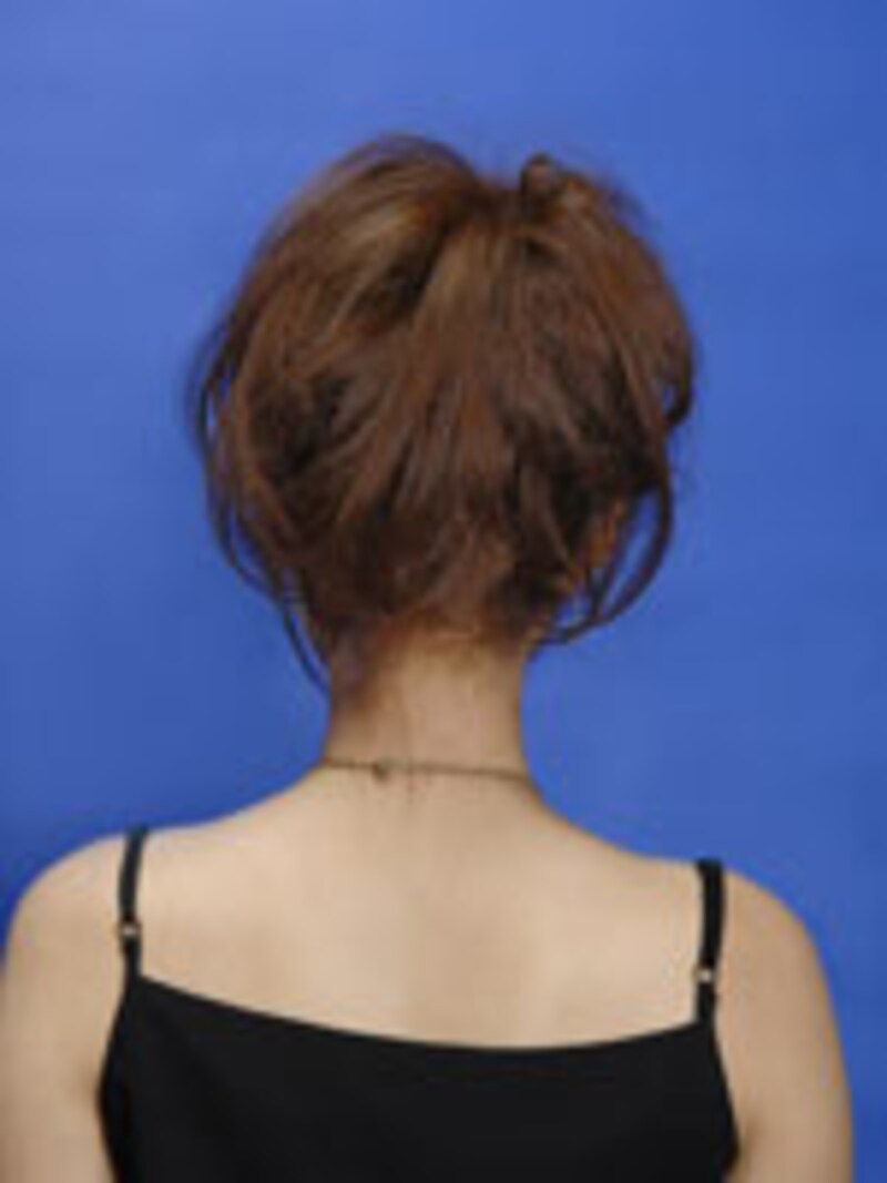 えりあしの部分がたるむとやぼったく見えるので、しっかりテンションをかけてピンで留めましょう。