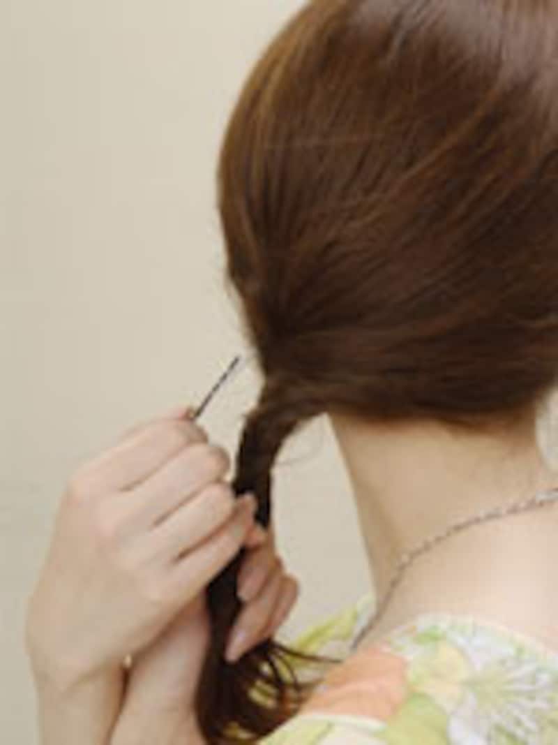 最初にねじりを加えた根元(始点)の部分にピンを入れ留めます。髪のハリが強い方は同じ方向に2本くらいピンを入れるとしっかり留まりますよ。