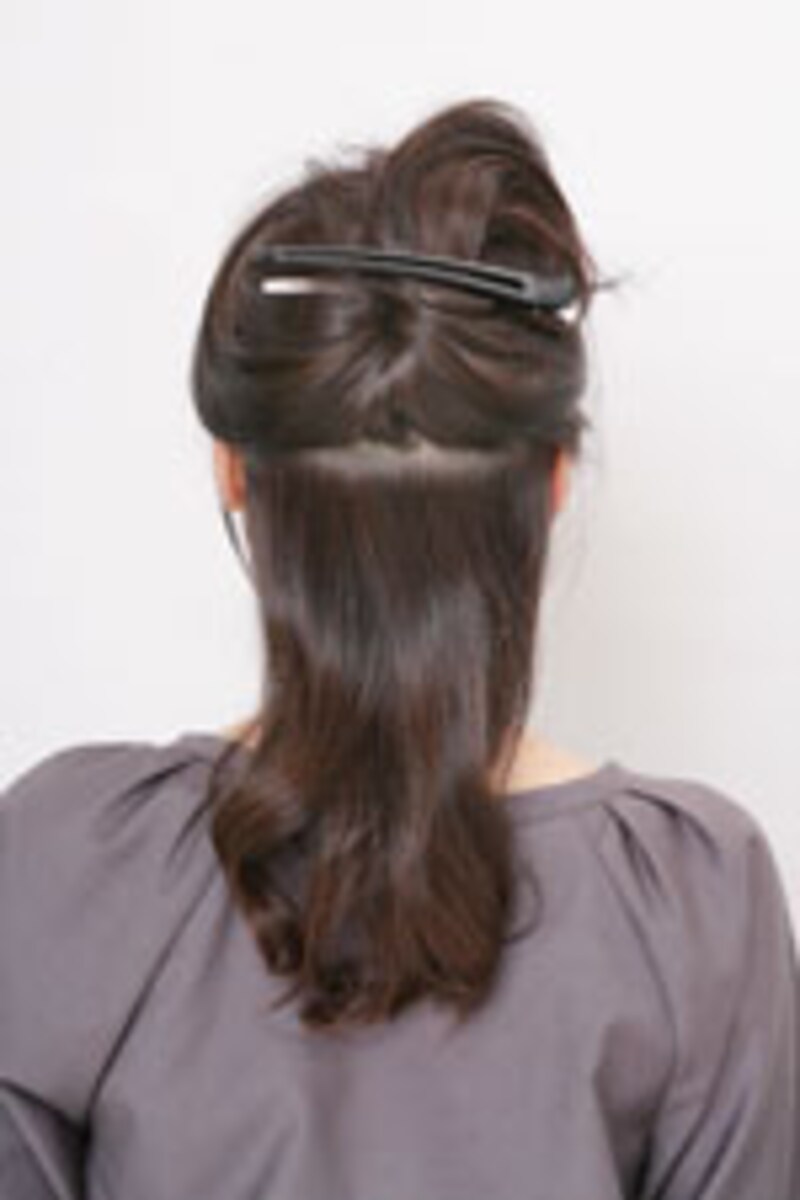 ポイントは、前髪の毛束を少し下ろすことでの小顔効果の高さと頭の中間くらいに結び目を持ってくることでのほど良い華やかさですね。これがもっと高い位置で結わけばもっとかわいらしい印象に、下に結わけば落ち着いたイメージになれますよ。TPOに合わせて使い分けるのもいいかもしれませんね。