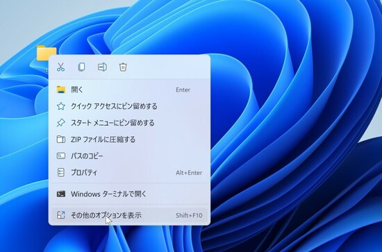 共有に設定したいフォルダを右クリックして「その他のオプションを表示」を選択