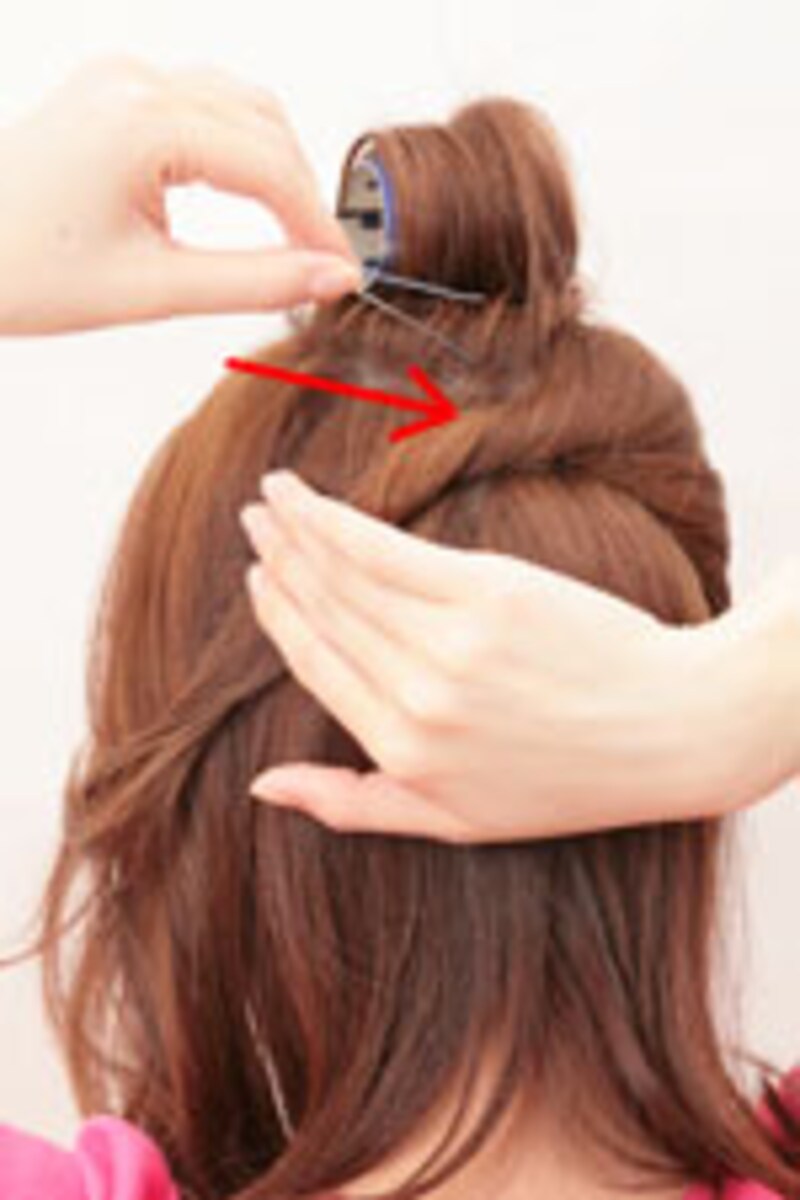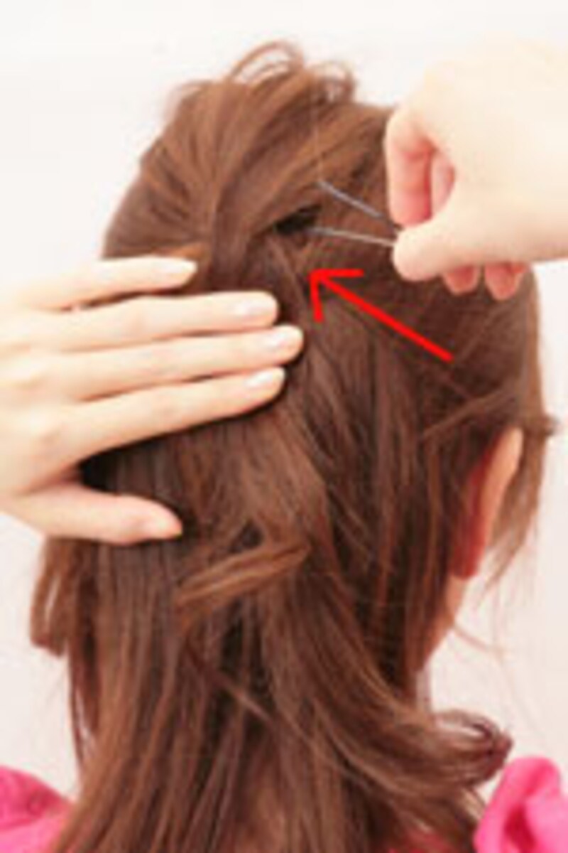 ピン留めする時に先ほどのSTEP2・3でクロスさせたところを包んで隠すようにするのがポイントですよ。