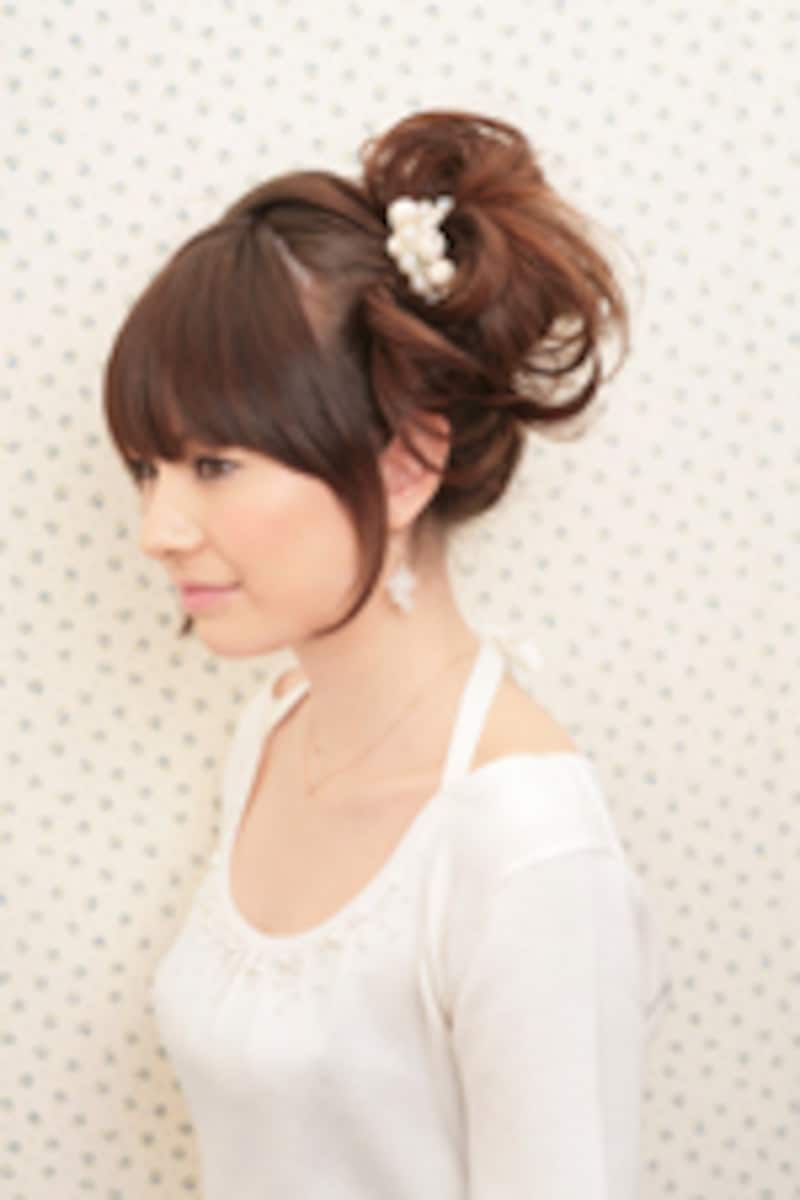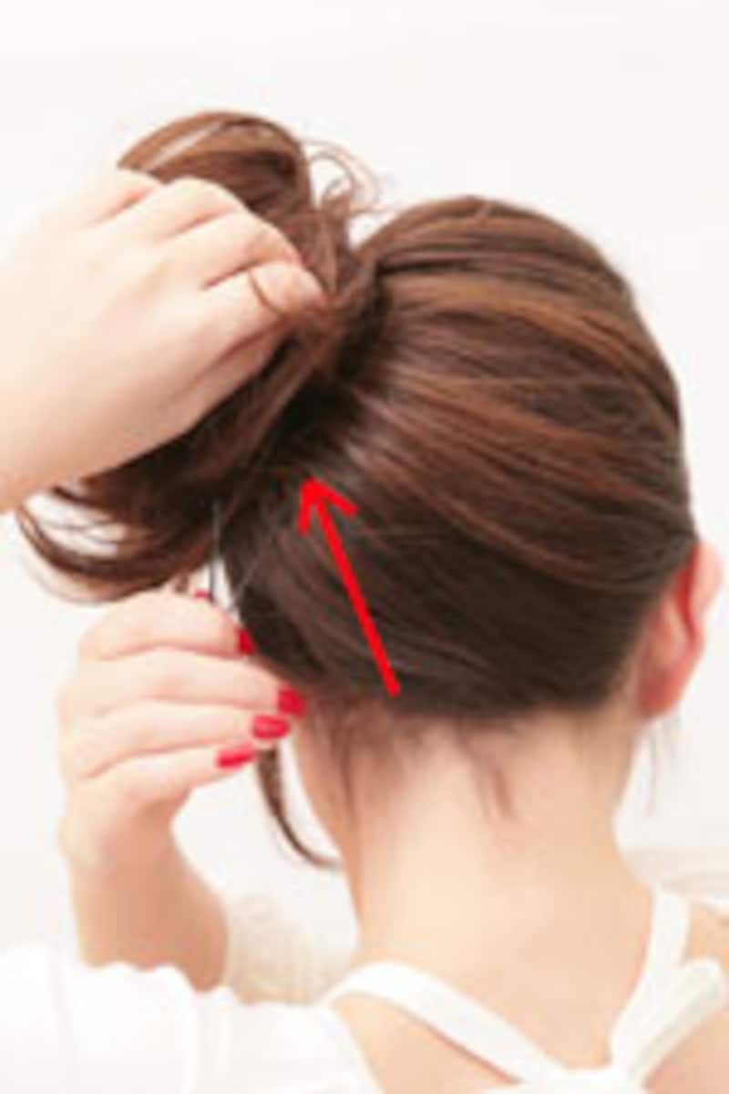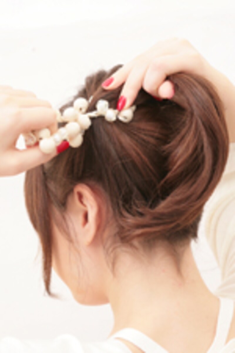 ヘアゴムを使って作るリボン風カジュアルヘアアレンジ