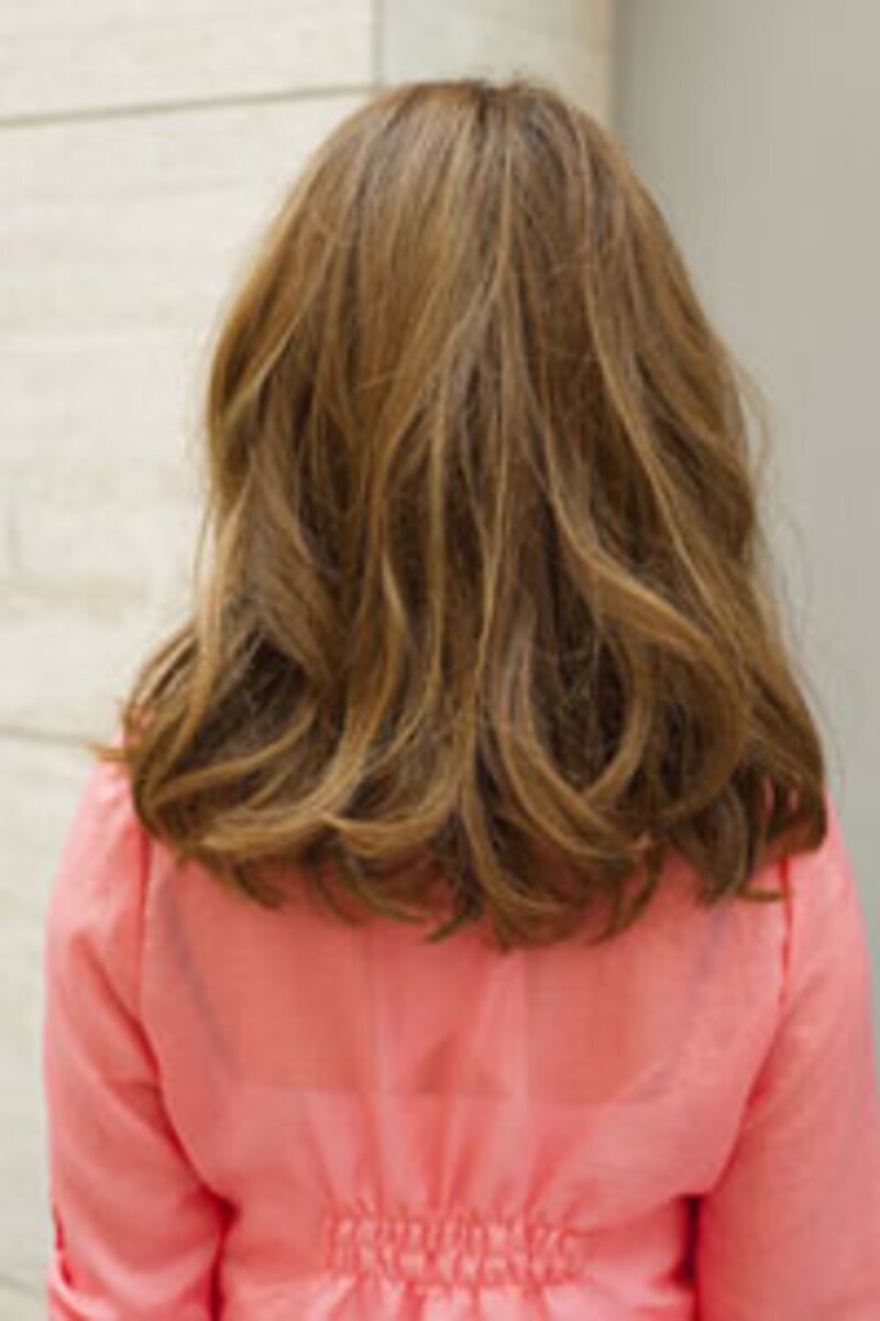 デジタルパーマ。太めのロッドで毛先から全体に1.5回転し、毛先のみパーマをかけます。