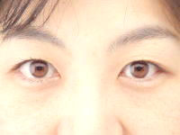 そしてこげ茶のペンシルアイライナーで、下まつげの際1/3にラインをひきます。1/3だけにすることによって、目がきつく見えるのを防ぎます。目の端だけ囲う事で、ワザとらしくなく、くっきりとした活力のある目元をつくりだします。注意するポイントは目の内側から外側へラインを引く事。逆にするとまぶたが下がってみえてしまいます。下へむかってメイクをする事は、顔の印象を微妙に下がり気味にみせてしまいます。チークでもシャドウでも、上へ上へむかってメイクするのがコツ。