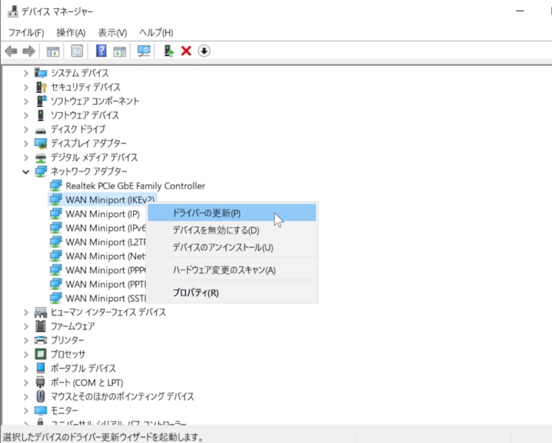 更新方法はWindows11/10共に、Windowsキー+Xキー→「デバイスマネージャー」→「ネットワークアダプター」をダブルクリック→表示されるドライバを右クリック→「ドライバーを更新」をすべてのネットワークドライバーで実行します。 ・問題が特定できない場合の処置