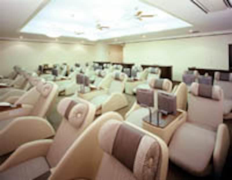 ここには150席ものリクライニングチェアがあり、個々のモニターで好きな映像を楽しめる他、読書や仮眠等にも快適なスペースで、ドリンク等のデリバリーサービスもできます。