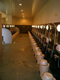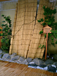 少し疲れたら、「お休み処」というスペースで休憩もできる。竹や緑に囲まれたいくつもの露天風呂。見上げると、「みうら湯」のイメージキャラクターのイルカがぶらさがっている。照明を覆うインテリアも、魚を象ったもの。こんな些細な気配りが庶民的なイメージになりがちな「スーパー銭湯」とは一線をなしているような気がした。 サウナ(結構広め。TVもあり)で汗も存分に流し、