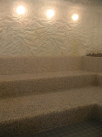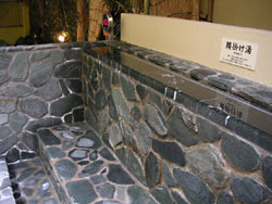 ちょろりちょろりと背中の下を流れる海洋深層水は、40.5度。冷えた空気が時折頬をあたっても不思議と冷えない。お湯に浸かっていないのに、体はぽかぽかと芯から温まる。「腰掛け湯」も然り。