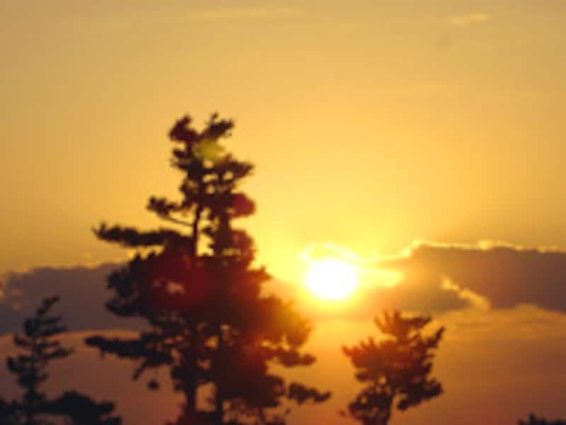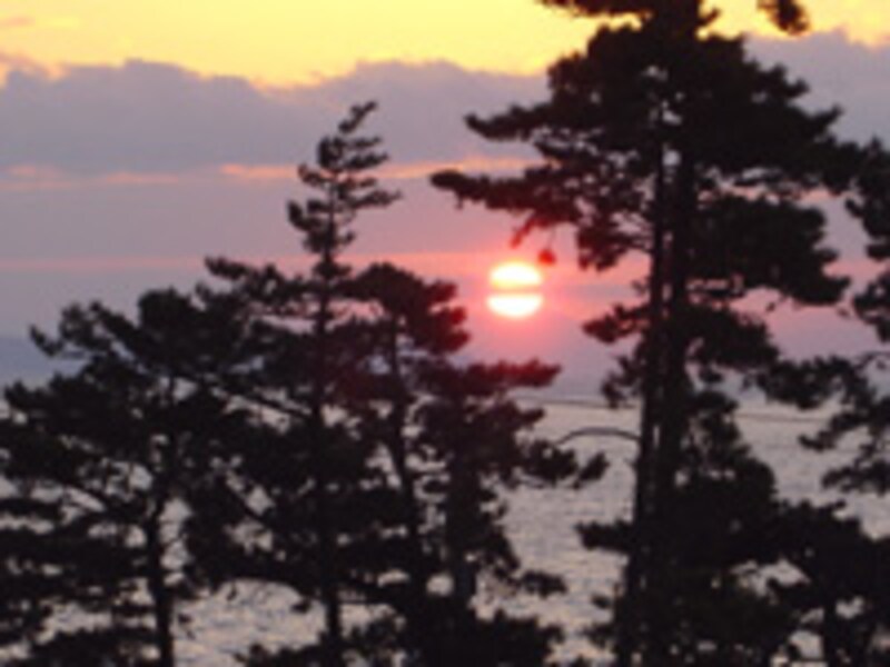 | 夜空がだんだん白んでいって、水平線の彼方からオレンジ色の光がまん丸の太陽とともに上がってゆく瞬間を見るのは一種の感動です。 |