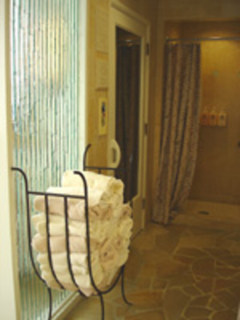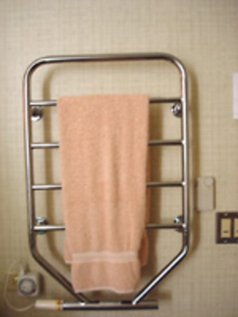 | トリートメント中は脱いだバスローブが温まるようにとウォーマーのついたタオル掛けにかけてくれる。 |