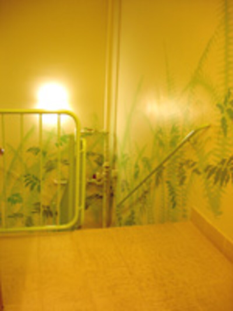 | この階段を通ってレセプションフロアから、スパフロアへ。 |