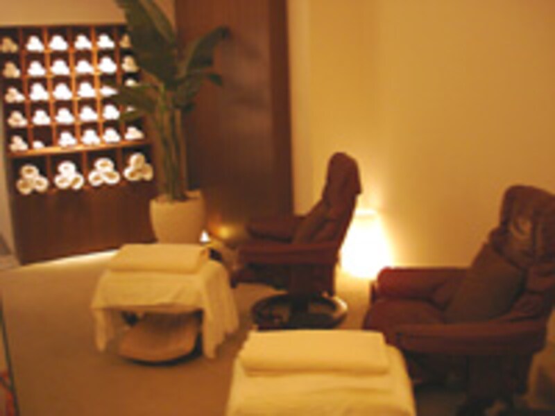 これほどの狭さなのにどうしてこんなに優雅に造りこんでいるのだろう?限られたスペースを上手に作っている店内は、ほぼ180度横になれる皮製のリクライニングチェアが、8台、並びます。カーテンで区切られたスペースは個室感覚で利用できます。