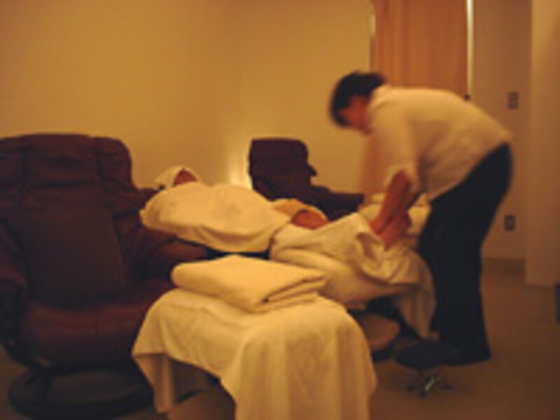 首から肩がほぐれたところで、リクライニングチェアを180度倒し、横になり、フットリフレクソロジーを受けます。施術の時に塗布するものをオイルかパウダーか選べるのですが、私は迷わずオイルにしました。オイルの方が感覚がとてもいいからです。
