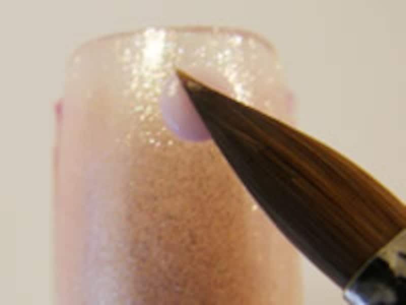 1.筆の先にできたミクスチャーを爪の上にのせます。